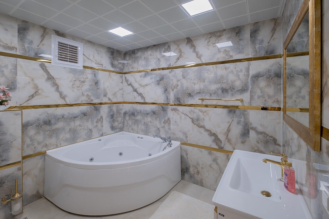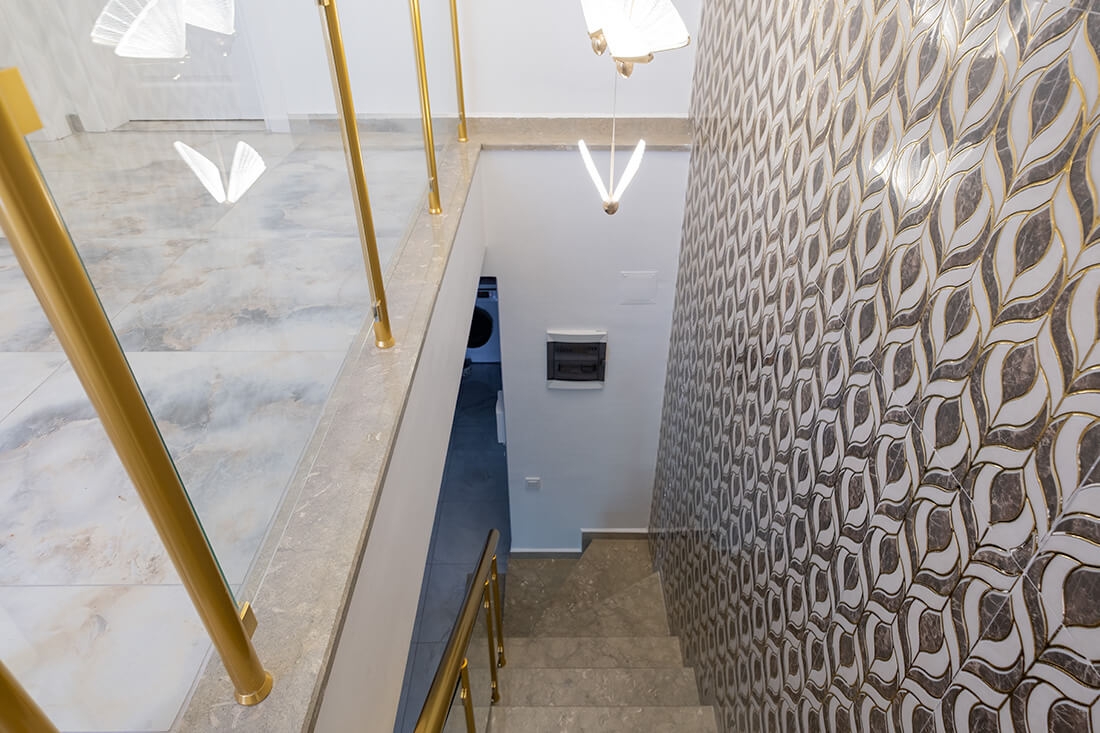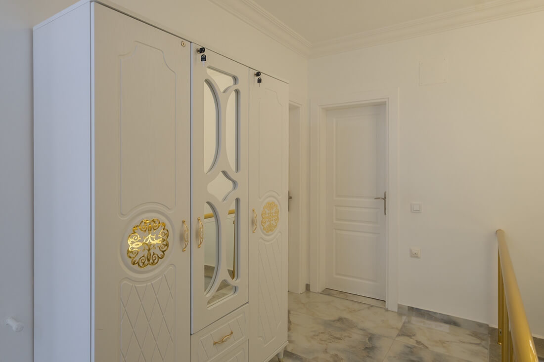 The spacious and airy interior living areas receive natural light throughout the day, offering both sea and mountain views, creating a peaceful atmosphere. Thanks to its duplex layout, the upper and lower floors are functionally separated, providing an ideal arrangement for family living.